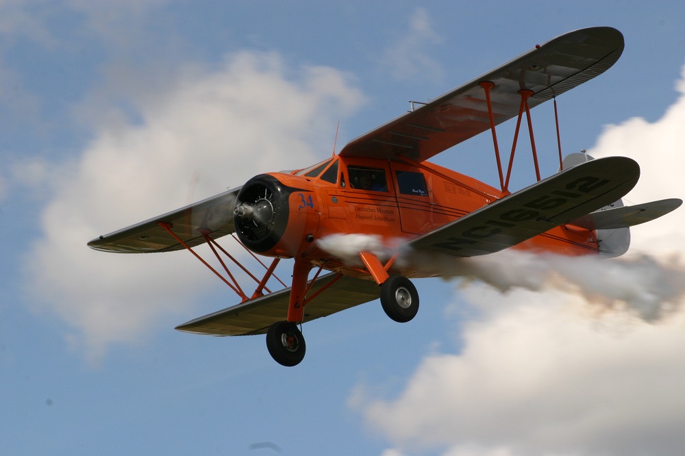 | Einzelkunstflug Zlin 326A - der Weltmeister Erwin Bläske trainiert in Neuhausen mit genau dieser Zlin - weltweit einzige flugfähige Maschine dieses Typs | |